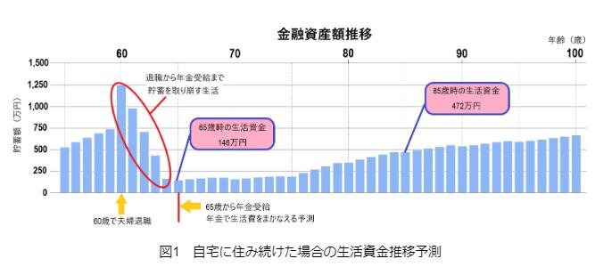 貯蓄が減った後の64歳でも貯蓄額が700万円を超えているし、100歳で約1,300万円残る予測か。