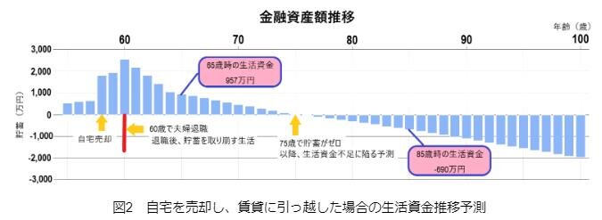 退職後は家賃が大きな負担になりそう。もし、賃貸に住み替えるなら生活の見直しや、収入を増やす方法を考えないと難しいかも。