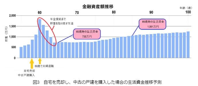 最後に、自宅を売却して中古の戸建を購入した場合がこれ。住み替え先の購入額は、経費込みで1,000万円と仮定したよ。
