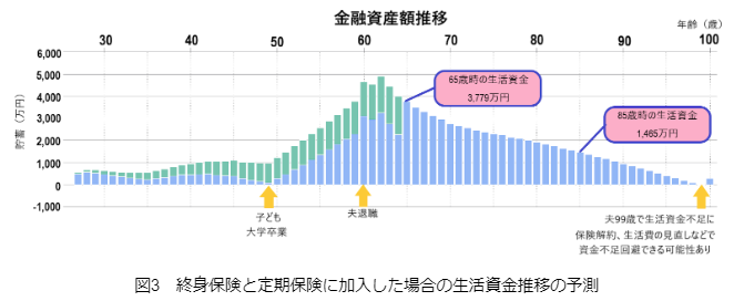 それと、99歳で貯金が足りなくなっているね。終身保険は解約してお金にすることもできるから、95歳くらいで生活資金に充ててもいいかもね。