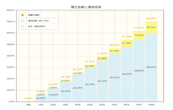 【事例③】毎月5万円の積立金を年率3%で10年間運用する
