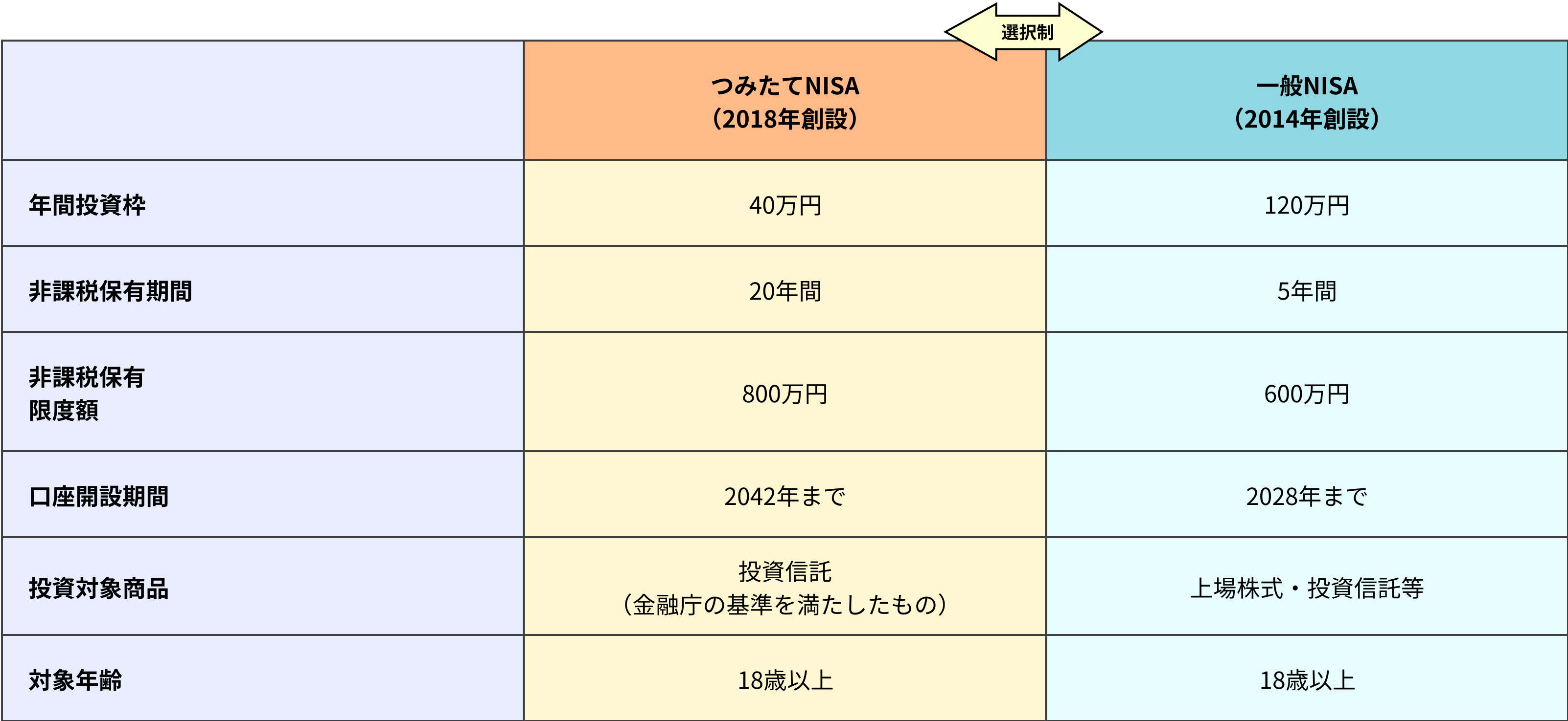 NISAとは、日本の個人投資家向けの制度のひとつで、少額投資非課税制度の略称です。NISAには、つみたてNISAと一般NISAの2種類があり、どちらかを選択して運用します。